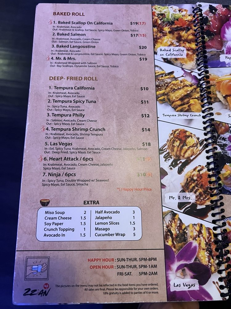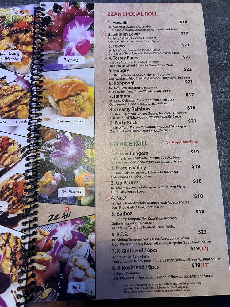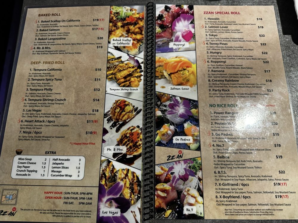 Zzan Sushi & Soju, located in San Diego, offers a trendy and casual dining experience with a wide range of vegan and vegetarian options. Known for its fresh and flavorful sushi rolls, the menu also includes tasty jalapeño bombs and comforting miso soups. Customers rave about the attentive and friendly service, creating a welcoming atmosphere. The restaurant's late-night hours make it a popular spot for night owls looking for delicious fried foods like gozas. While the food is top-notch, some customers have mentioned occasional long wait times and mixed experiences with the service. Overall, Zzan Sushi & Soju is a must-visit for sushi lovers craving a relaxed and fun dining experience.